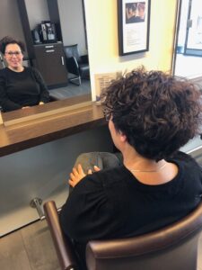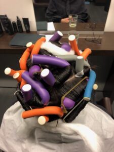 Nu heb ik het geluk dat ik kapster ben en dus allerlei kapperstools en haarproducten tot mijn beschikking heb. Zo kwam het er dus van dat ik tijdens de gezamenlijke “eigen haaravond” van ons team mijn haar heb laten permanenten/omvormen. Collega Angelique had de eer om mijn haar in te draaien op allerlei verschillende soorten diktes en vormen krullers om zo een zo natuurlijk mogelijk effect te creëren. En wat ben ik blij met het eindresultaat, ik heb een mooie grove “natuurlijke” krul in mijn haar, precies zoals ik hoopte.